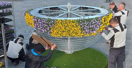 Danes smo na Krekovem trgu postavili kroglo iz kar 2240 cvetočih mačeh, ki ponazarjajo nogometno žogo. Žoga naznanja začetek Evropskega... več